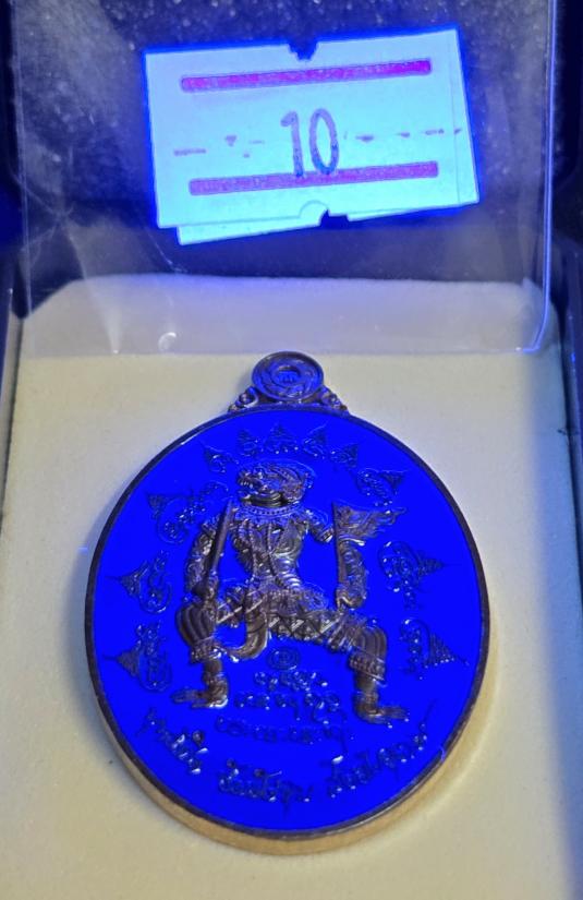 เนื้อตะปูสังขวานร ลงยาน้ำเงิน เรืองแสง ด้านหลังฝังตระกรุดเสก