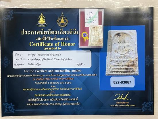 สร้างปี 2484 คราบกรุเดิมๆ สภาพสวย สมบูรณ์ ไม่หักไม่ซ่อม รับประกันพระแท้ ดูง่าย ใบประกาศรางวัลที่2 งานสมาคม