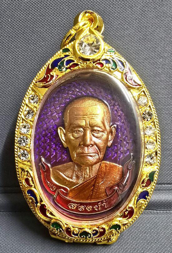 บล็อก "หลังสรงน้ำ"... เหรียญรุ่น"สรงน้ำ" หลวงปู่บุญมา โชติธัมโม วัดเขาแก้วทอง ปราจีนบุรี เนื้อมหาชนวน ลงยาม่วง ลงยาจีวร,ป้ายแดง ตอก"สรงน้ำ" ตอก"หัวเสือ" ตอก"นะ" เลข ๔...สร้างเพียง 6 องค์เท่านั้น