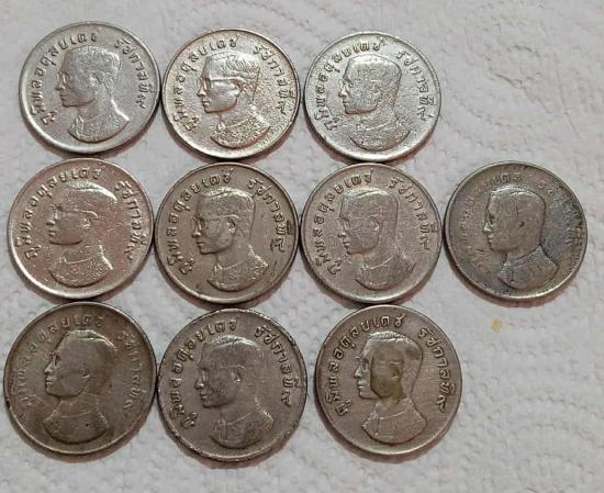 เหรียญ 1 บาท หลังครุฑ พ.ศ.2517 ในสมัย รัชกาลที่ 9 พกติดตัวไว้เป็นมงคล เหรียญสภาพผ่านการใช้งาน จำนวน 10 เหรียญ ครับ |