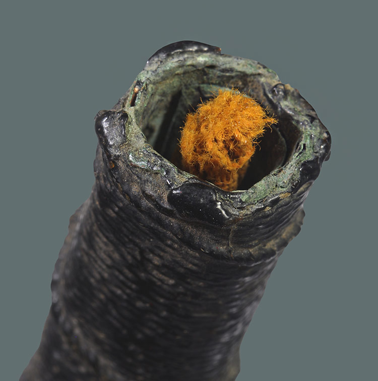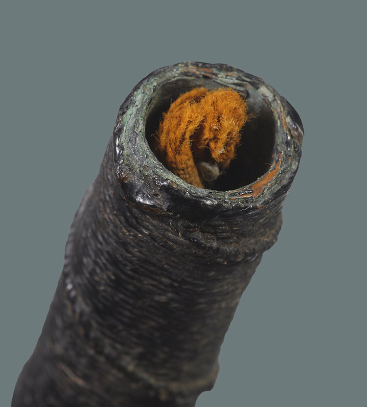 วัดใจ**เครื่องราง ตะกรุดเนื้อทองแดงถักเชือก ลงรักเก่า ยาว 5.นิ้ว ไม่ทราบที่...เดิมๆครับ