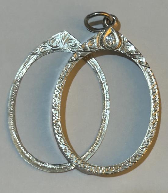 วัดใจ กรอบเงินฝังพลอยซุ้มบน มือ2 สภาพสวย เลี่ยมพระใส่ไว้ไม่เคยแขวน ขนาดหน้าจอกรอบตามรูป