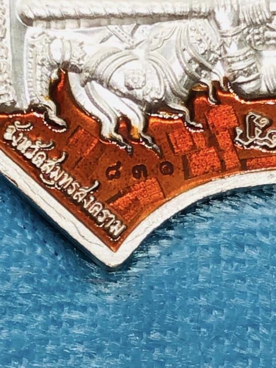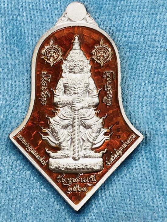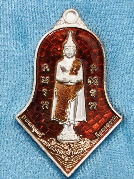 เหรียญหลวงพ่อวัดบ้านแหลม ประทับหลังท้าวเวสสุวรรณโณ พิมพ์ทรงจำปีใหญ่ หลวงพ่ออิฏฐ์ ภทฺทจาโร ปี 2563 วัดจุฬามณี เนื้อเงินลงยาแดง เลขโค๊ต 831 พร้อมกล่องเดิม