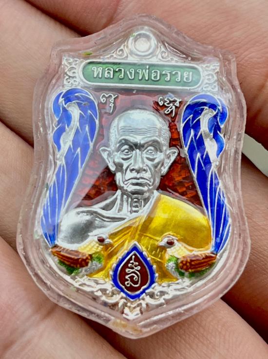 หลวงพ่อรวย วัดตะโก รุ่นเสาร์5 รวย เมตตาบารมี เนื้อเงินลงยาแเดง ปี63 เลขโค็ต 881 พร้อมเลี่ยม เก็บผิว