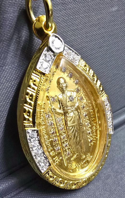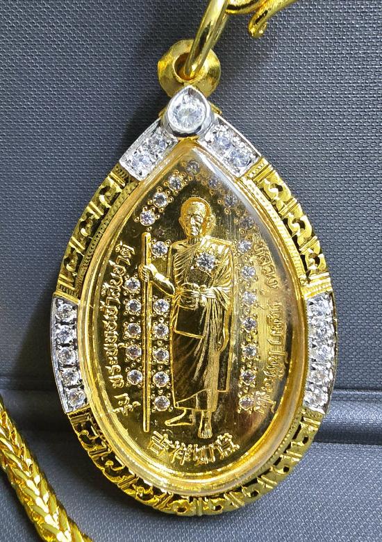.เนื้อชุบทอง ฝังเพชรCZเต็มพื้น,พลอยขาวสังฆาฏิ ใส่ตลับอิตาลีชุบทองฝังเพชรขอบ+สร้อยชุบทองพร้อมใช้