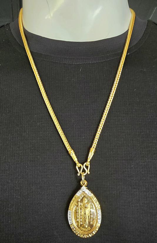 เนื้อชุบทอง ฝังเพชรCZเต็มพื้น,พลอยขาวสังฆาฏิ ใส่ตลับอิตาลีชุบทองฝังเพชรขอบ+สร้อยชุบทองพร้อมใช้
