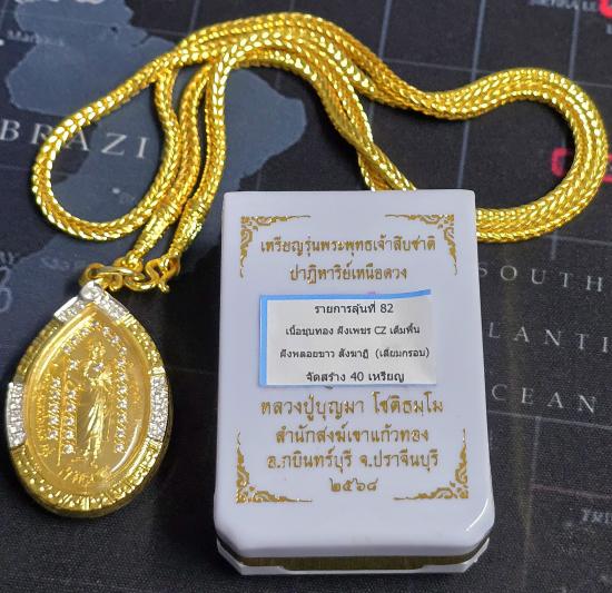เหรียญรุ่น"พระพุทธเจ้าสิบชาติ ปาฏิหารย์เหนือดวง" หลวงปู่บุญมา โชติธัมโม ปราจีนบุรี เนื้อชุบทอง ฝังเพชรCZเต็มพื้น,พลอยขาวสังฆาฏิ ใส่ตลับอิตาลีชุบทองฝังเพชรขอบ+สร้อยชุบทองพร้อมใช้ หมายเลขเบิ้ล ๓๓....พ
