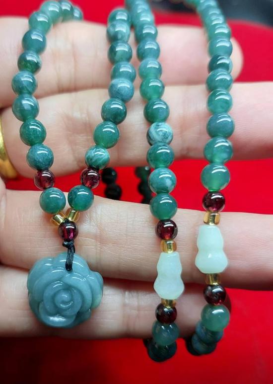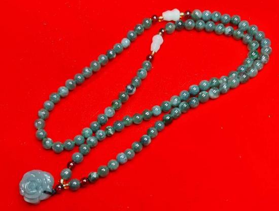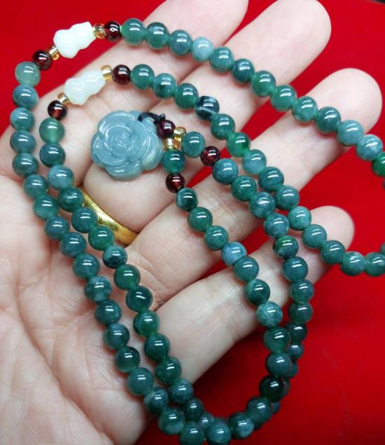 ***วัดใจ***สร้อยหยกจักรพรรดิ์ ขั้นด้วยโกเมน และ น้ำเต้าขาว สวยๆ เม็ด 6 มิล ยาว 22 นิ้ว