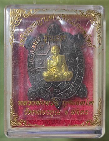 เหรียญพญาเต่าเรือนโภคทรัพย์ รุ่นแรก หลวงพ่อหวั่น วัดคลองคูณ จ.พิจิตร เนื้อทองแดงหน้ากากทอง กล่องเดิมครับ |
