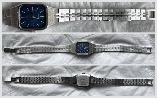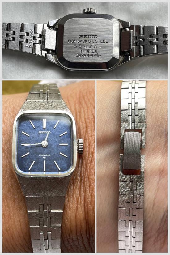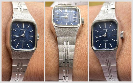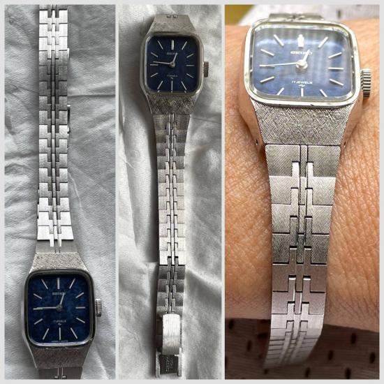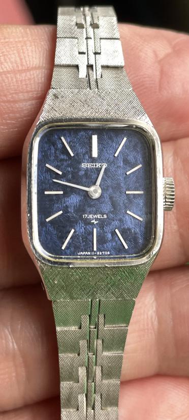 นาฬิกา Seiko vintage ทรงเหลี่ยม 17 jewels ขนาด 18 มม.หน้าน้ำเงินลายหินอ่อน |