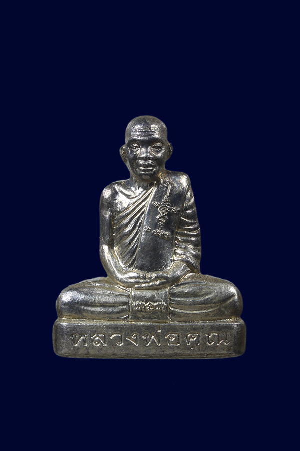 รูปหล่อปั้มเข่ากว้าง ( รุ่นแรก )หลวงพ่อคูณ เนื้อเงิน รุ่ นไพรีพินาศ วัดบึง จ.นครราชสีมา