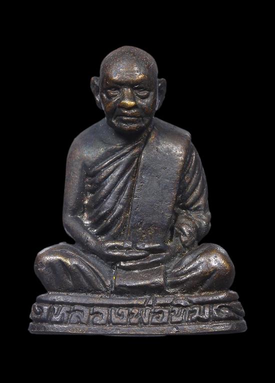 รูปหล่ออุดกริ่ง หลวงพ่อทิม วัดพระขาว จ.อยุธยา ปี 2545 ทองแดงรมดำ ตอกโค้ด พร้อมกล่อง
