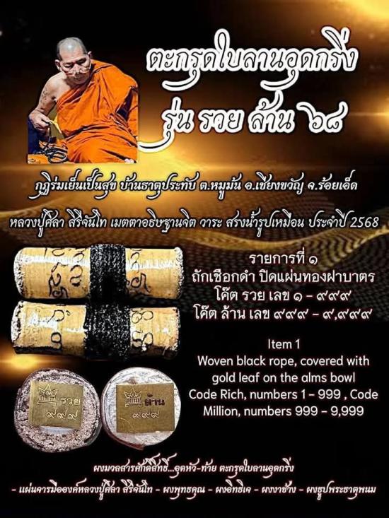 หลวงปู่มหาศิลา เมตตาอธิษฐานจิต ตะกรุดใบลานอุดกริ่ง รุ่นรวยล้าน68 ปี2568
