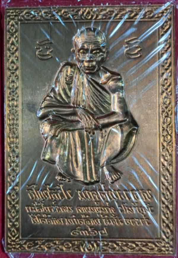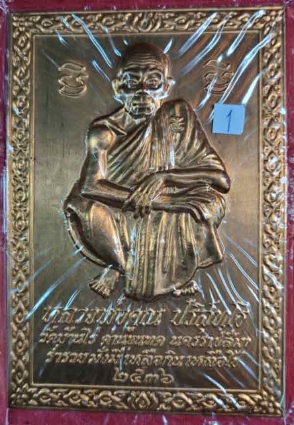 แผ่นปั้มรูปเหมือน หลวงพ่อคูณ ขนาด 3.5x5.0 นิ้ว เนื้อทองแดง ถุงเดิม ปี36 |