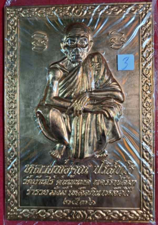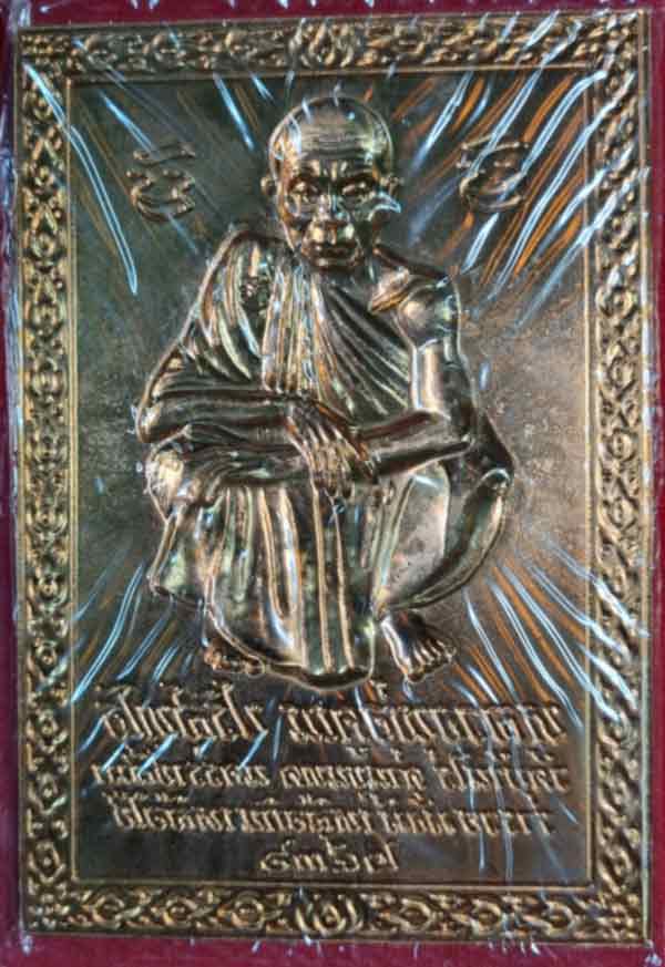 แผ่นปั้มรูปเหมือน หลวงพ่อคูณ ขนาด 3.5x5.0 นิ้ว เนื้อทองแดง ถุงเดิม ปี36 |