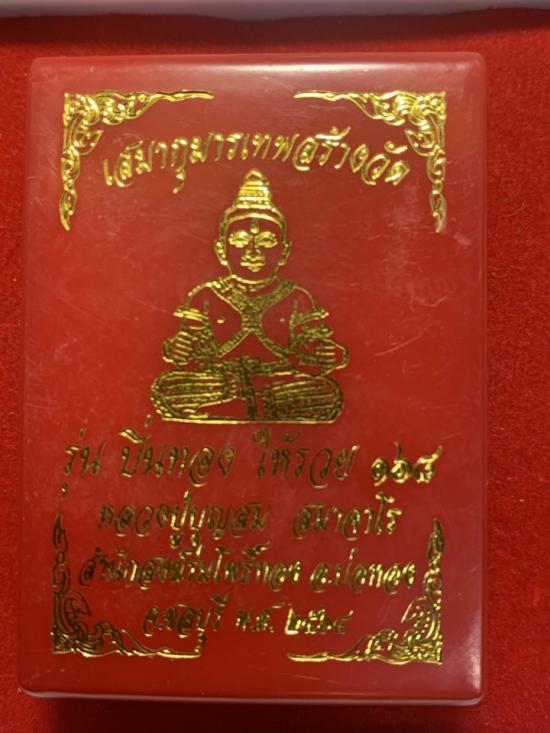 เหรียญเสมากุมารเทพสร้างวัด รุ่นปิ่นทองให้รวย เลข645 หลวงปู่บุญสม จังหวัดชลบุรี ปี 2564