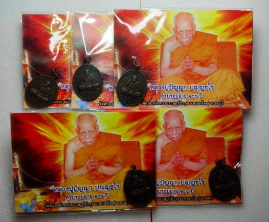 เหรียญรุ่น 2 ครบรอบอายุ 106 ปี หลวงปู่ปัญญา วัดหนองผักหนาม ปี 2553 เนื้อทองแดง 5 เหรียญ แดงเคาะแรก