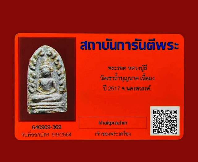 พระรอด หลวงปู่สี วัดเขาถ้ำบุนาค เนื้อผงพุทธคุณ ปี 17 สวยเดิมๆ พร้อมบัตรรับรองครับ |