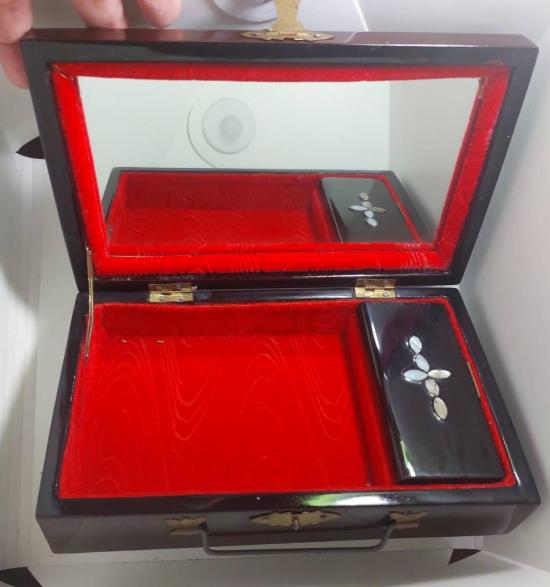 กล่องไม้ฝังมุก งานเก่าน่าสะสม สามารถใส่เครื่องประดับ-อุปกรณ์พระเครื่องได้ |
