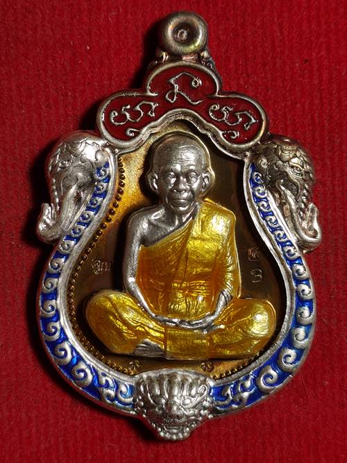 เหรียญเสมาเลื่อนขั้น 91 หลวงพ่อคูณ ปริสุทโธ ออกวัดบ้านไร่ ปี 2557 เนื้อ ทองแดงขัดเงาปะกบ 3 ชิ้น กรอบเงินลงยาหน้ากากเงินจีวรเหลือง หมายเลข 23 สภาพสวย เคาะเดียวแดง