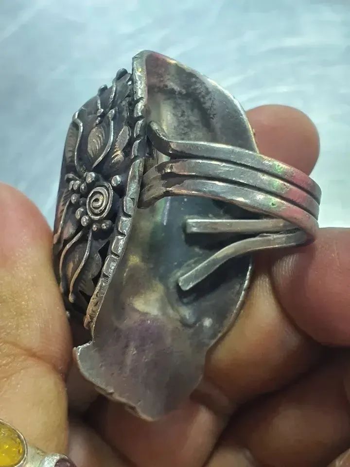 เคาะเดียว แหวนเงิน หัววัสดุงr ไบค์เกอร์ยุค70' หนัก39.7g ปรับไซส์ในตัวได้ครับ