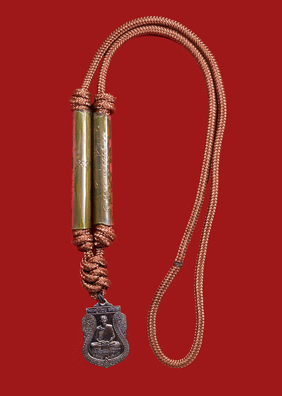 | ตะกรุดคู่ ขนาดประมาณ 5 นิ้ว พร้อมเหรียญเสมา หลวงปู่เจียม รุ่นทหารพระเจ้าอยู่หัว ปี 2549 วัดอินทราสุการาม (วัดหนองยาว) |