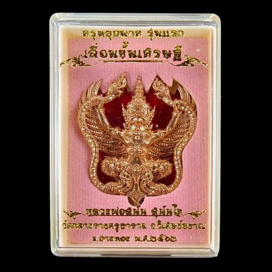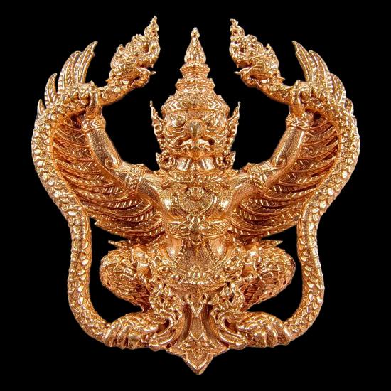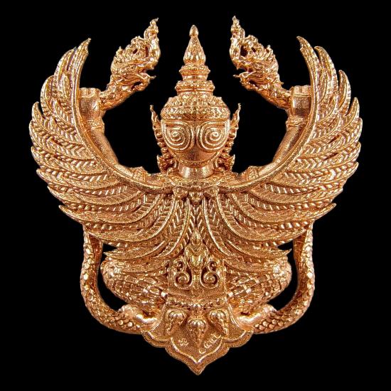 พญาครุฑหยุดนาค รุ่น เลื่อนขั้นเศรษฐี รุ่นแรก หลวงพ่อสนั่น วัดกลางราชครูธาราม อำเภอวิเศษชัยชาญ จังหวัดอ่างทอง เนื้อทองแดง หมายเลข ๑๕๔๒ พร้อมกล่องเดิม |