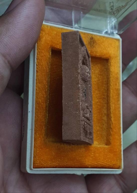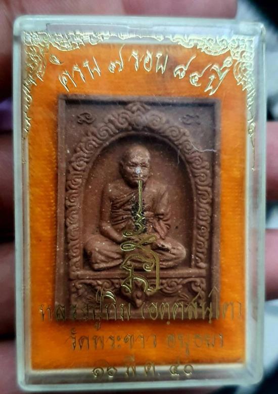 พระผงรูปเหมือน พิมพ์สี่เหลี่ยมลายกนก 7 รอบ หลวงปู่ทิม วัดพระ ขาว เนื้อชานหมาก ปี 2540 เคาะดียว 100 บาท