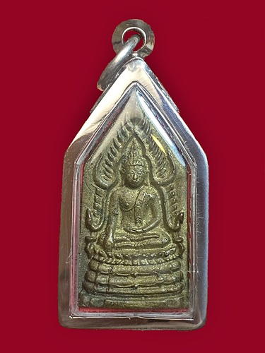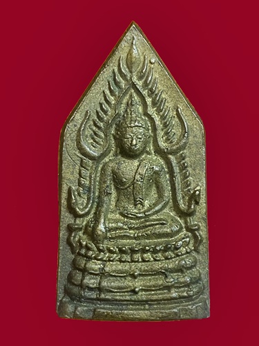 พระพุทธชินราช ท่านเจ้าคุณศรี(สนธ์) วัดสุทัศนฯ พิมพ์ห้าเหลี่ยมใหญ่ เนื้อทองเหลือง ปี2494 มีบัตรรับรองจีพระ เคาะเดียว