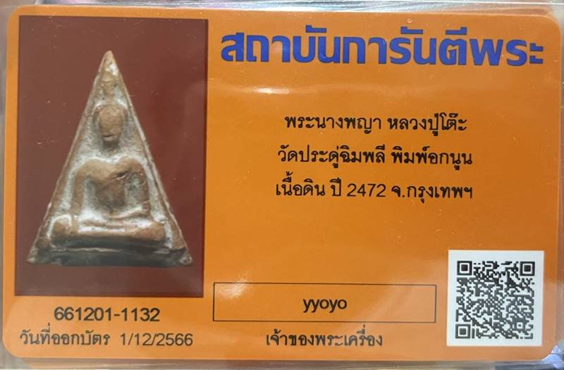 พระนางพญาเนื้อดิน หลวงปู่โต๊ะ ปี 2472 พิมพ์อกนูน ( พระผิวเดิมมีคราบน้ำมนต์ ) พร้อมัตรรับรองครับ