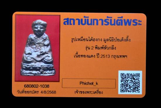 พระรูปหล่อ ไต้ฮงกง รุ่น 2 พิมพ์พนิยม หัวกลึง ปี 2513