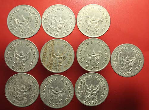 เคาะเดียว250..... เหรียญ1บาท รัชกาลที่9 หลังครุฑ ปี 17 มหาบพิตร 10เหรียญคะ |