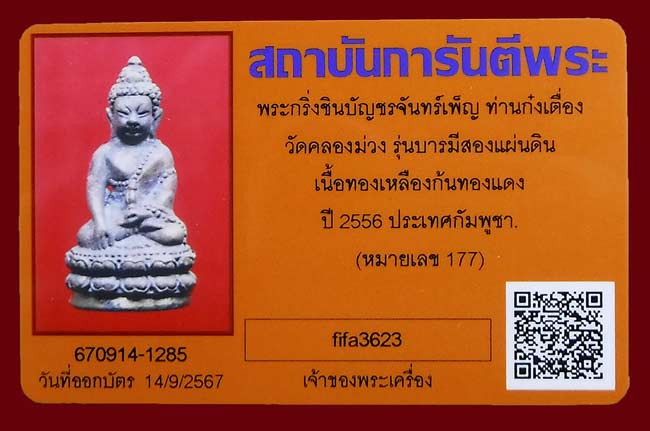 แดงที่เคาะแรก !!! พระกริ่งชินบัญชรจันทร์เพ็ญ เนื้อเททองนำฤกษ์ในพิธี รุ่นสร้างบารมีสองแผ่นดิน ปี2556 ท่านก๋งเตื่อง วัดคลองม่วง (สร้างน้อย+หมายเลข 177 )+ บัตรพระแท้