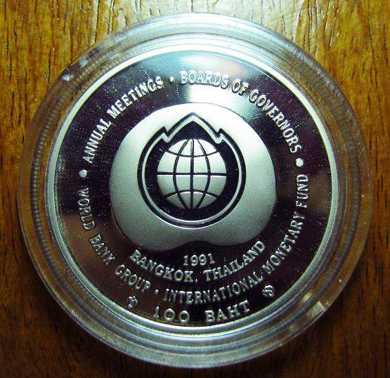 เหรียญการประชุมผู้ว่าการธนาคารโลก เหรียญ 100 บาท เนื้อเงินขัดเงา ( สวยงามทรงคุณค่า ) |