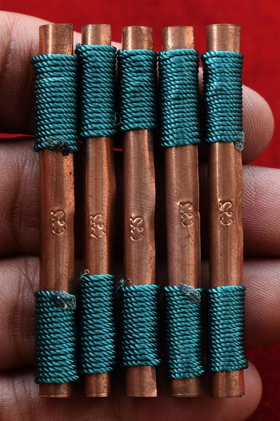 ชุด 5 ดอก...ตะกรุดประสานใจ (หญิงร่ำไห้ ชายร่ำหา) ปี 2558 หลวงปู่บัว วัดดอนขวาง จ.นครราชสีมา พร้อมซองรูปเดิมจากวัด สภาพพระตามรูปที่ลงทุกประการ (ขนาดยาว 2.5 นิ้ว)
