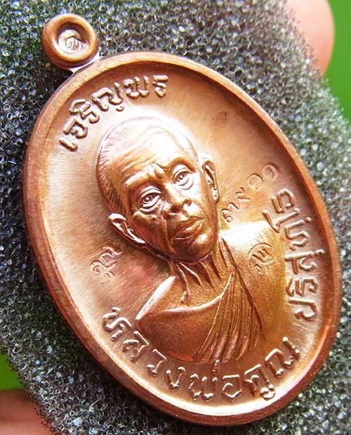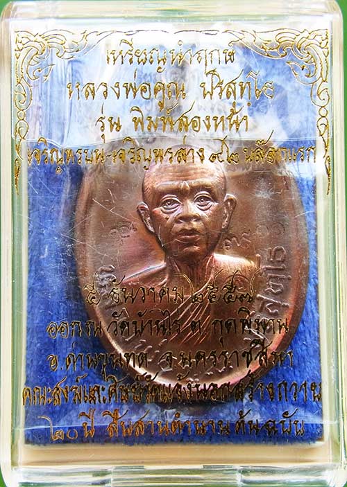เหรียญ นำฤกษ์ เจริญพรบน - เจริญพรล่าง ๙๒ บล๊อกแรก พิมพ์ 2 หน้า หน้าเจริญพรบน หลังเจริญพรล่าง หลวงพ่อคูณ วัดบ้านไร่ ปี 2557 เนื้อทองแดงมันปู พร้อมกล่องเดิมจากวัด