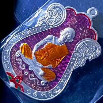 หลวงพ่อคูณ เหรียญที่ระฤกเลื่อนสมณศักดิ์ 47 เนื้อเงินลงยา 4 สี โทนสีม่วง กล่องเดิม ซีลเดิมหมายเลข 609