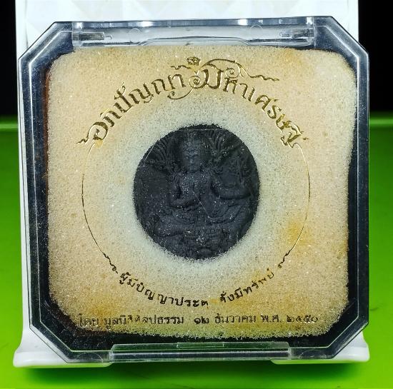 | รายละเอียด | พระเทวราชโพธิสัตว์ จตุคามรามเทพ อภิปัญญามหาเศรษฐี ผู้มีปัญญาประดุจดั่งมีทรัพย์ โดยมูลนิธิศิลปกรรม พ.ศ. 2550 (พุทธศิลป์รูปแบบของ อาจารย์เฉลิมชัย โฆษิตพิพัฒน์) เนื้อผงพุทธคุณดำ ขนาด 3.5 cm. สภาพสมบูรณ์ ไม่มีตำหนิ พร้อมกล่องเดิม |