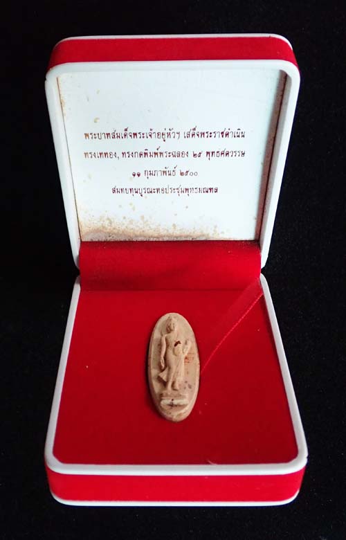 กล่องรุ่นนี้...ทางพุทธมณฑล ได้นำพระที่สร้างในปี๒๕๐๐ จำนวนหนึ่ง (พบตกค้างในลังไม้ภายในห้องเก็บของ ของพุทธมณฑล พระบางส่วนจึงมีคราบปลวกเกาะอยู่บนองค์พระ) แล้วนำมาบรรจุกล่องใหม่ เพื่อให้ประชาชนได้ร่วมทำบุญในงานผ้าป่ามหากุศล สมทบทุนบูรณปฏิสังขรณ์หอประชุมพุทธมณฑล เมื่อปี ๒๕๕๗ ราคาบูชาร่วมทำบุญ องค์ละ ๕๐๐ บาท |