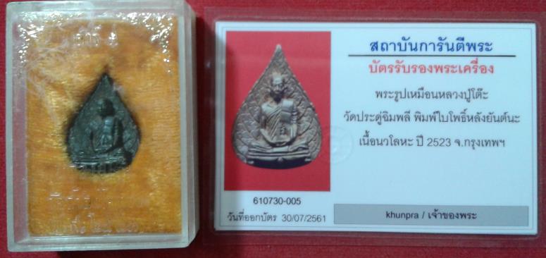 พระรูปเหมือนใบโพธิ์ หลวงปู่โต๊ะ วัดประดู่ฉิมพลี พิธีเสาร์ห้า ปี 2523 เนื้อนวะโลหะ มาในกล่องเดิมพร้อมบัตรรับรอง