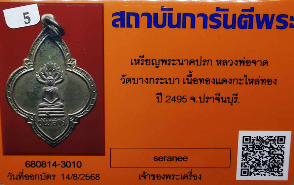 (วันเสาร์)เหรียญพระปางนาคปรก หลวงพ่อจาด วัดบางกระเบา เนื้อทองแดงกะไหล่ทอง ห่วงเดิม ปี2495 จ.ปราจีนบุรี + บัตรG-pra สภาพเดิมค่ะ สภาพตามรูปทุกประการค่ะ |