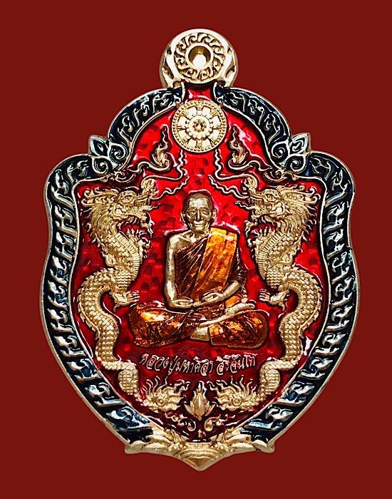 หลวงปู่มหาศิลา เจ้าสัวอุดมทรัพย์ เนื้ออัลปาก้าลงยาแดง จมูกโด่ง เลข 466กล่องครบ ยุดต้นปี64 หมุนเวียนน้อย คัดสวยๆ