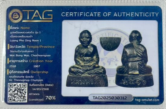 รูปหล่อ รุ่นแรก!! หลวงพ่อดิ่ง วัดบางวัว ปี 2510
