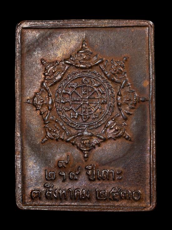 (หนึ่งเดียวแต่ได้ถึงสอง) อีกเหรียญหนึ่งครับที่น่าใช้แห่งเหรียญสุดยอดประสบการณ์ เพราะปลุกเสก ปี30 พร้อมกันกับแว่นกลม ปี30 ช่วงปลุกเสก ปี30นั้น ไม่มีคนรู้จักว่าเป็นเหรียญอะไร และไม่มีคนเช่า กันเลย พอช่วง ปี32 ได้ทำการสร้างพระปิดตาพังพระกาฬ ปี32(รุ่นแรก) ทางกรรมการจัดสร้างหลักเมืองเลยนำเหรียญแสแตมป์ ปี30 นี้ ปลุกเสกอีกครั้งหนึ่งพร้อมกับเหรียญปิดตาพังพระกาฬ จึงเป็นเป็นเหรียญที่น่าใช้มากๆ เพราะเหรียญนี้เหรียญได้ปลุกเสกถึง2พิธีครับ (แขวนเหรียญนี้เหมือนได้ แขวนแว่นกลม30และปิดตาพังพระกาฬ32พร้อมๆกันครับ หนึ่งเดียวแต่ได้ถึงสอง) แสตมป์ ปี30(รุ่นแรก) บล็อคเฮง (แขวนแล้วเขาบอกว่า มีแต่ เฮง เฮง เฮง ครับ) เหรียญแสตมป์ ปี30(ยันต์ข้าง) รุ่นแรก สร้างในโอกาสที่ พระบาทสมเด็จพระเจ้าอยู่หัว ทรงพระกรุณาโปรดเกล้าทรงพระสุหร่าย ทรงเจิมยอดชัยหลักเมือง นครศรีธรรมราช อันเป็นวันมหามงคลยิ่งใหญ่ คือวันจันทร์ที่ 3 สิงหาคม 2530 ตรงกับเดือน 9 ขึ้น 9 ค่ำ ปีเถาะ เนื้อโลหะประกอบด้วย ส่วนผสมของ ทองคำ นาค เงิน ที่องค์ราชันดำ จตุคามรามเทพ ลงคาถาอาคม ยันต์หัวใจธรณี หัวใจมนุษย์ ยันต์ ศักดิ์สิทธิ์ทั้งหลายของชาวศรีวิชัย ส่วนรูปแบบด้านหน้าจำลองเอาส่วนบนของเสาหลักเมืองย่อขนาด ช่างฝีมือประติมากรรมให้งดงามวิจิตรเป็นเลิศ ด้วย ความลำบากยากเย็น เพื่อให้สมกับศิลปกรรมล้ำค่าแห่งยุค ส่วนด้านหลังจำลองตราศักดิ์สิทธิ์ของชาวชวากะทำเป็นรูปพญาราหูอมจันทร์ราย ล้อมตรา 12 นักษัตร 8 ทิศ ตรงกลางบรรจุดวงชะตาวันสำคัญ มี 2 แบบ คือ แบบมีห่วงไม่มียันต์ และแบบมียันต์แต่ไม่มีห่วง และชนิด นวโลหะบรรจุกล่อง พระหลักเมืองเนื้อโลหะทุกชนิดได้นำออกไปประกอบพิธีปลุกเสกกลางสมุทร เมื่อวันที่ 16 กรกฎาคม 2530 เวลาเที่ยง พระอาทิตย์ทรงกลด ฟ้าดินสำแดงเทพนิมิตให้เห็นเป็นที่ประจักษ์แล้ว พล.ต.ต. ขุนพันธ์ราชเดช ยังได้ประกอบพิธีปลุกเสกกลางหาว ณ ศาลหลักเมือง โดยพระอาจารย์ผู้ทรงวิทยาคมสำนักเขาอ้อ จึงครบถ้วนตามพิธีของชาวศรีวิชัยพระหลักเมืองเนื้อโลหะ จึงประกอบด้วยบุญฤทธิ์ สมดังเจตนาอธิฐานที่มอบให้แก่สมนาคุณแก่ผู้ที่ช่วยเหลือสร้างหลักเมืองตาม อัตภาพ ด้วยอำนาจแห่งพระพุทธคุณมนตราอาถรรพ์ขององค์ราชันดำ จตุคามรามเทพ จะช่วยคุ้มครองป้องกันอันตรายทั้งหลายทั้งปวง แก่ผู้ที่มีไว้ติดตัว ช่วยให้ประกอบอาชีพบังเกิดโชคดี ไปมาค้าขายบังเกิดลาภผล ใส่นาข้าว นากุ้ง จักอำนวยช่วยให้เพิ่มดอกออกผลน่าอัศจรรย์ สร้างขึ้นเพียงครั้งเดียว ในโอกาสเดียว ไม่มีอีกแล้วในอนาคต แบบแม่พิมพ์ทั้งหมดได้ประกอบพิธีฝัง