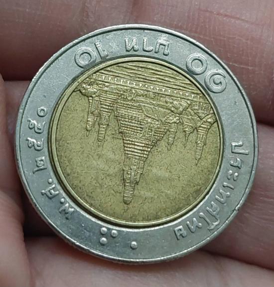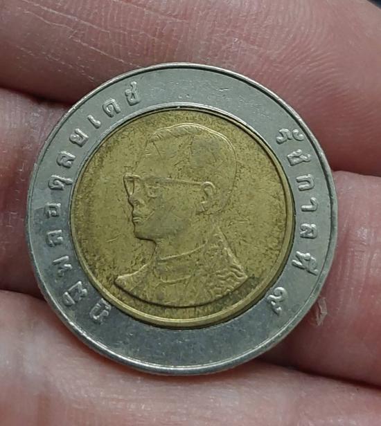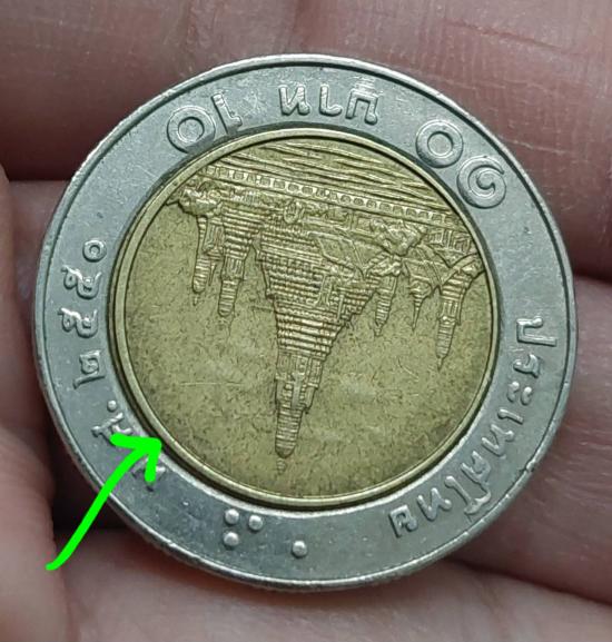 เหรียญ 10 บาท 2สี ร.9 ขอบเขยื้อน |