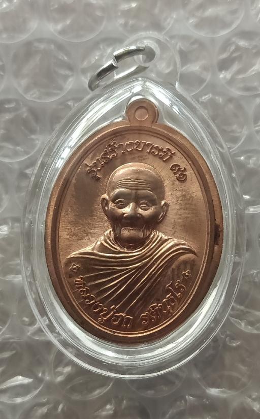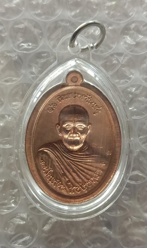 เหรียญรูปไข่ห่มคลุมเนื้อทองแดงหลังแบบไม่ตัดปีก รุ่น สร้างบารมี91 หลวงปู่ฮก พศ.2558