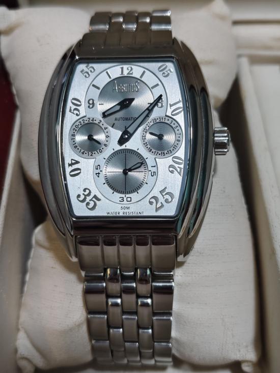 แบบ 5 เข็ม เข็มชั่วโมง(มีพรายน้ำ) เข็มนาที(มีพรายน้ำ) เข็มวินาที(มีพรายน้ำ) เข็มบอกวันที่ และเข็ม 24 ชม.ทุกฟังก์ชั่นใช้งานได้ดี