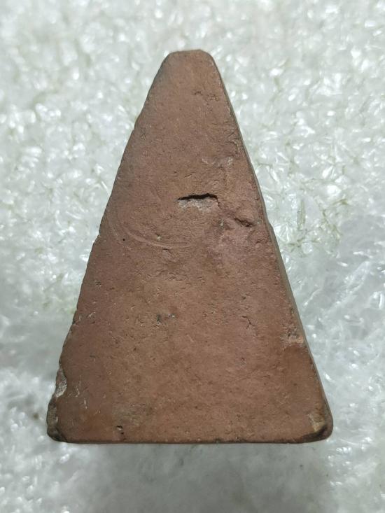 รายละเอียด "เคาะเดียว"พระพุทธพิมพ์สามเหลี่ยม เนื้อดินเก่า ไม่ทราบวัด