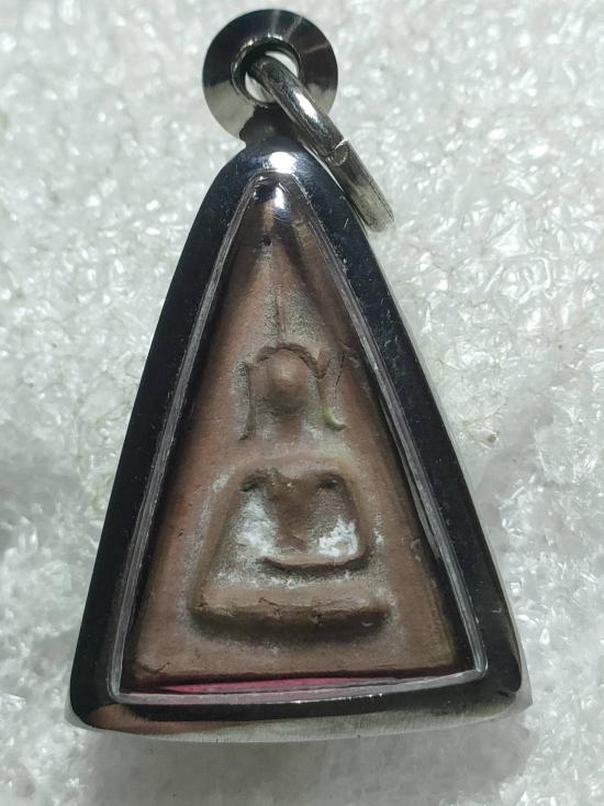 ชื่อพระเครื่อง "เคาะเดียว"พระพุทธพิมพ์สามเหลี่ยม เนื้อดินเก่า ไม่ทราบวัด