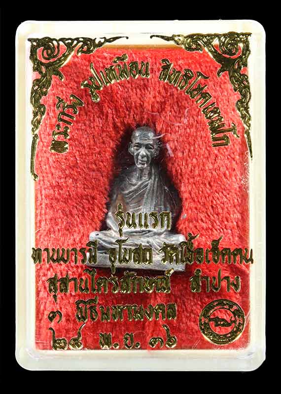 รูปหล่อ รุ่นแรก ทานบารมี หลวงพ่อเกษม เขมโก ปี 2536 เนื้อเงิน No. 484 พร้อมกล่องเดิม ครับ